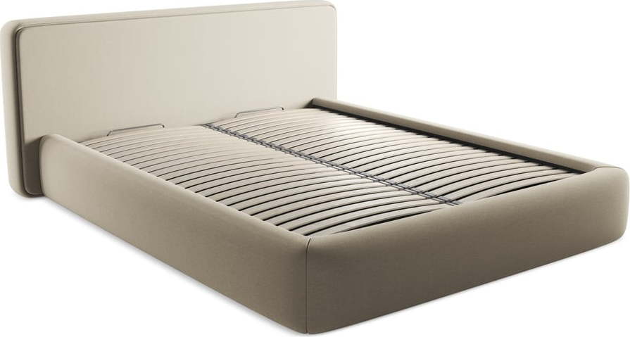 Další informace k produktu: Béžová čalouněná dvoulůžková postel s úložným prostorem s roštem 160x200 cm Kiana – Makamii