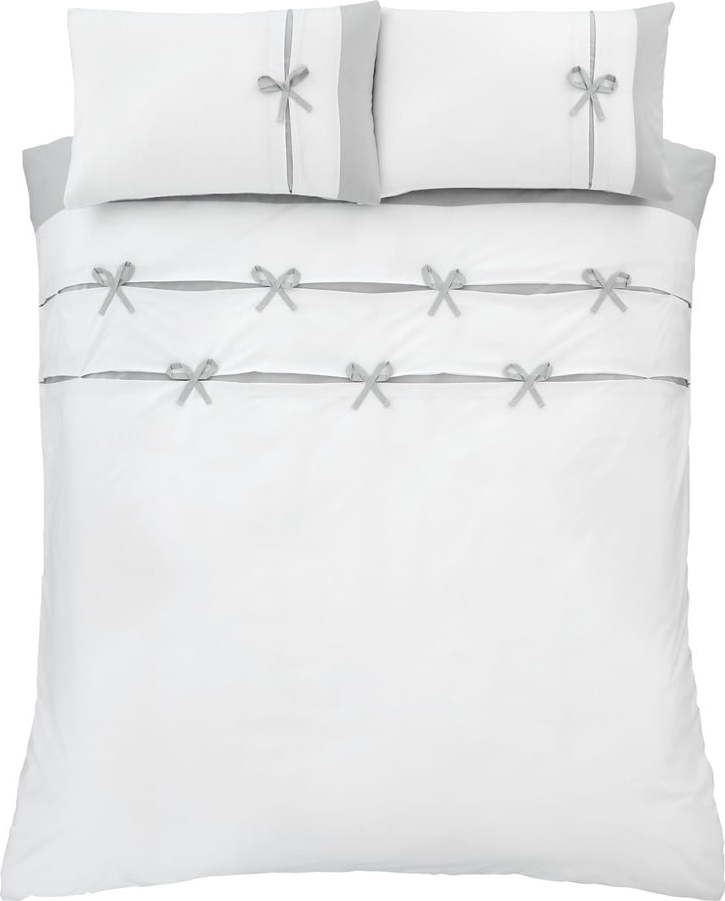 Další informace k produktu: Bílo-šedé povlečení Catherine Lansfield Milo Bow, 135 x 200 cm