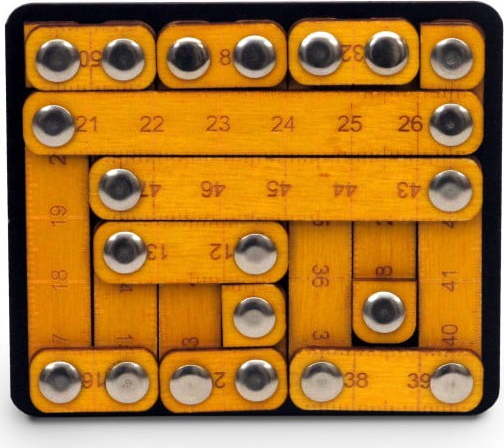 Další informace k produktu: Hlavolam s dřevěnými prvky RecentToys Tough MeasuresJsou ideálními společníky na dlouhé cesty na dovolenou ale i vhodným dárkem pro všechny milovníky záludností. Hlavolamy jsou skvělé také na psychiku, pomáhají relaxovat a podporují logické myšlení a trpělivost. Potrapte svoje mozkové závity a protáhněte prsty, zábava začíná. Jak hrát? Zarovnejte obě pravítka tak, aby spolu dokonale seděly na podkladu. V některých místech se můžou překrývat nahoře i dole. S tímto hlavolamem procvičíte svou prostorovou představivost, logické myšlení i strategii ♥