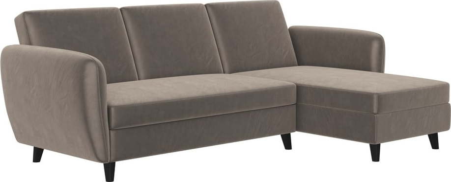 Hnědá sametová rozkládací rohová pohovka Perry – Støraa