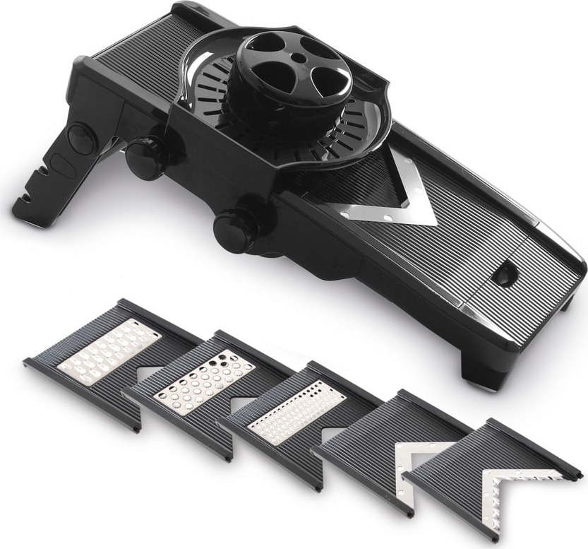 S tímto praktickým kráječem od značky Hendi nakrájíte zeleninu na mnohé způsoby. Je vyrobený z tvrdého a odolného polypropylenu černé barvy se skládacím pogumovaným stojanem. Má 5 odnímatelných nástavců z kvalitní nerezové oceli, jejichž čepel ve tvaru V zajišťuje efektivní a precizní krájení. Umožňuje nastavení tloušťky koleček v rozmezí 1-9 mm a hranolek 6-9 mm. Součástí je držák pro menší kusy zeleniny, který funguje jako chránič prstů. Celková výška je 14 cm.