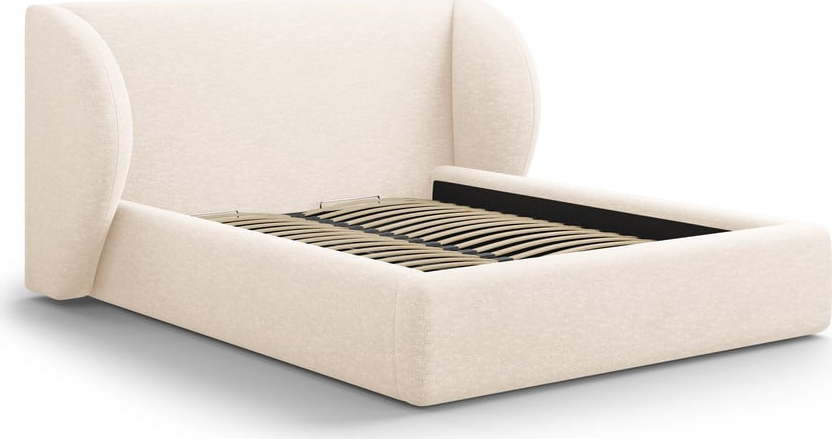 Další informace k produktu: Krémová čalouněná dvoulůžková postel s úložným prostorem s roštem 200x200 cm Miley – Micadoni