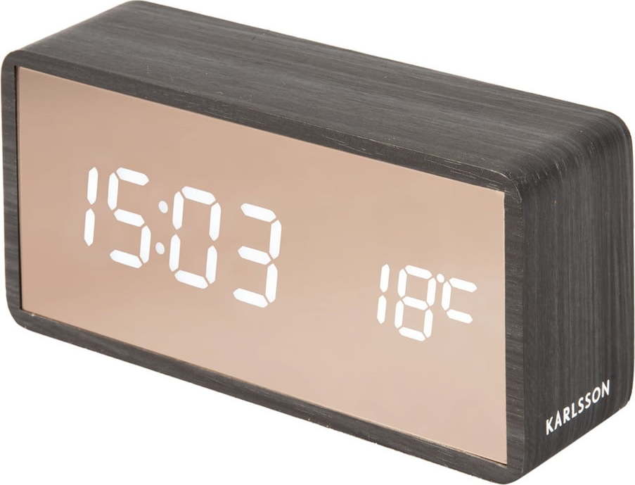 Další informace k produktu: LED budík v měděné barvě a dekoru tmavého dřeva Karlsson Mirror