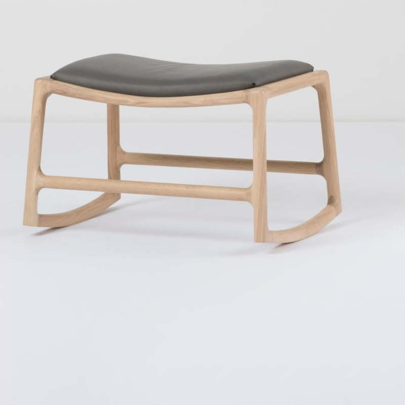 Další informace k produktu: Podnožka s konstrukcí z masivního dubového dřeva s šedým detailem z buvolí kůže Gazzda Dedo