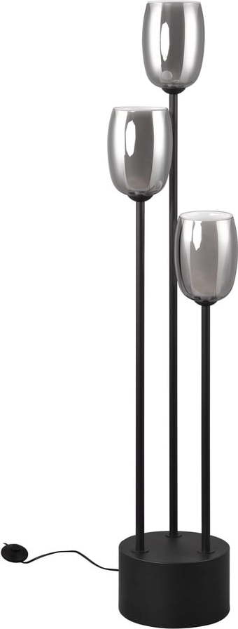 Stojací lampa se skleněným stínidlem v černo-stříbrné barvě (výška 140 cm) Barret – Trio Select