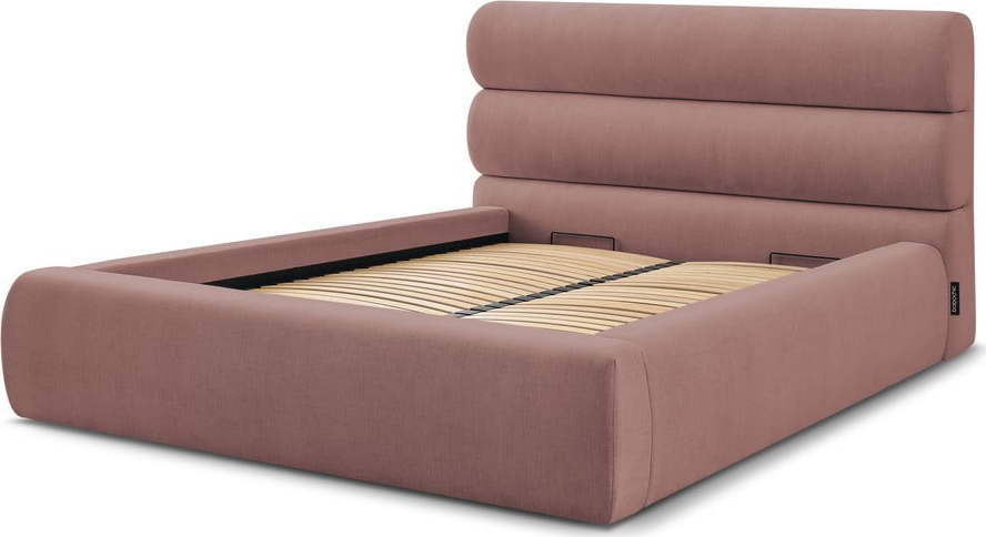 Světle růžová čalouněná dvoulůžková postel s úložným prostorem s roštem 180x200 cm Jagna – Bobochic Paris