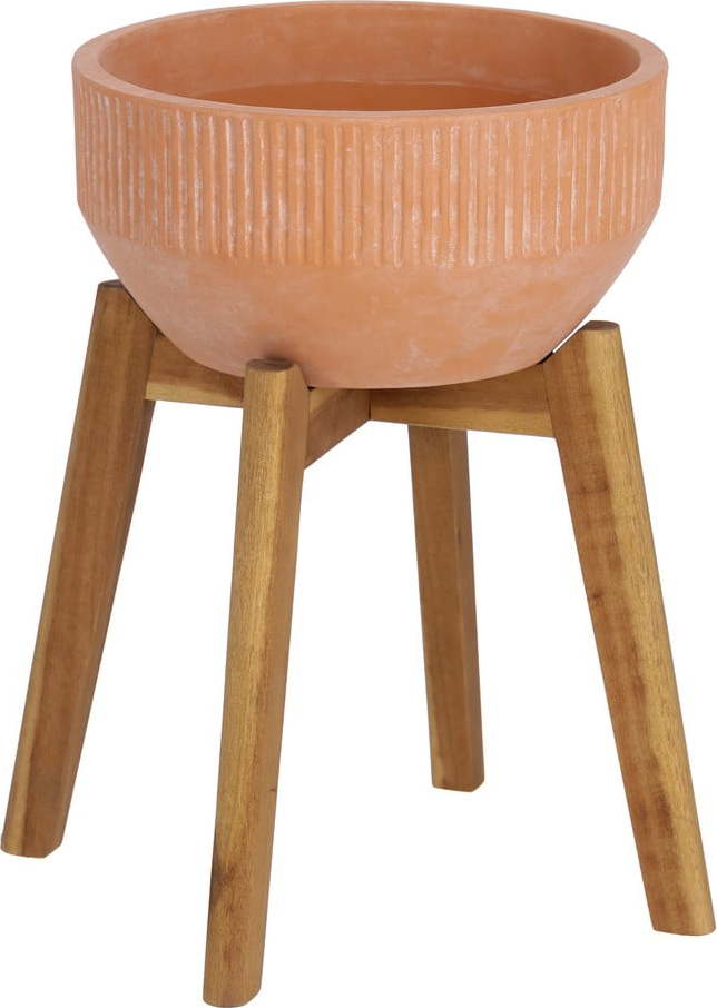 Terakotový květináč na dřevěném stojanu Kave Home Suba, výška 40 cm