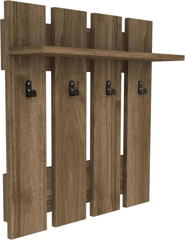 Další informace k produktu: Tmavě hnědá nástěnná police se 4 věšáky Carina